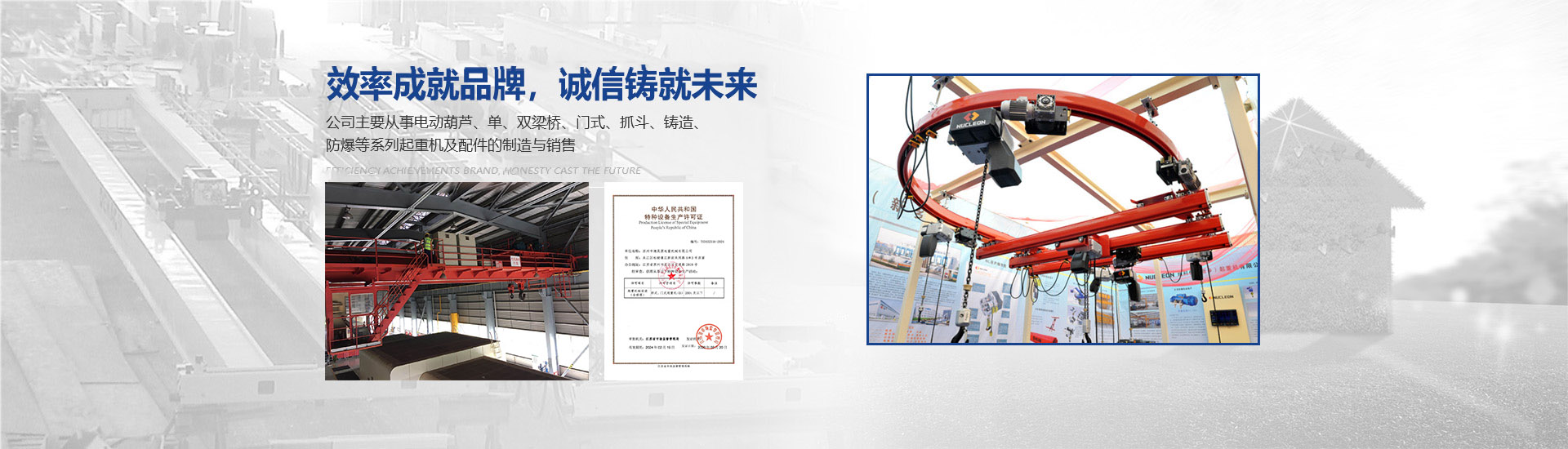 蘇州市德昊源起重機械有限公司主要從事電動葫蘆、單、雙梁橋、門式、抓斗、鑄造、防爆等系列起重機及配件的制造與銷售。擁有江蘇省市場監(jiān)督管理局頒發(fā)的中華人民共和國特種設(shè)備生產(chǎn)許可證。